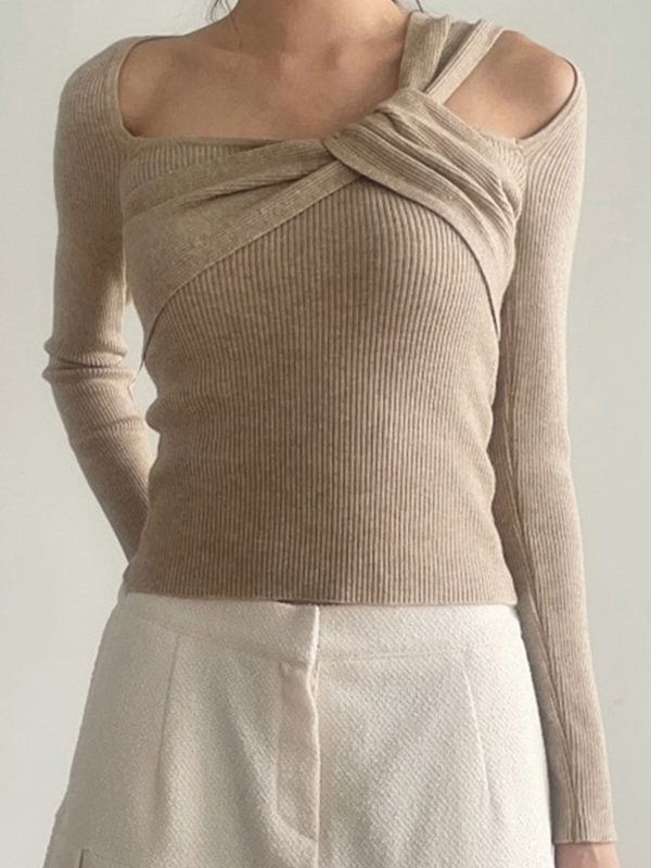 Jerseys de manga larga con hombros descubiertos y asimétricos retorcidos
