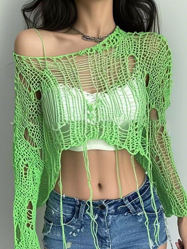 Jerseys de manga larga con hombros descubiertos y asimétricos retorcidos
