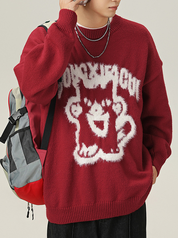 Suéter de cuello redondo de imitación de visón pintado a mano con dibujos animados