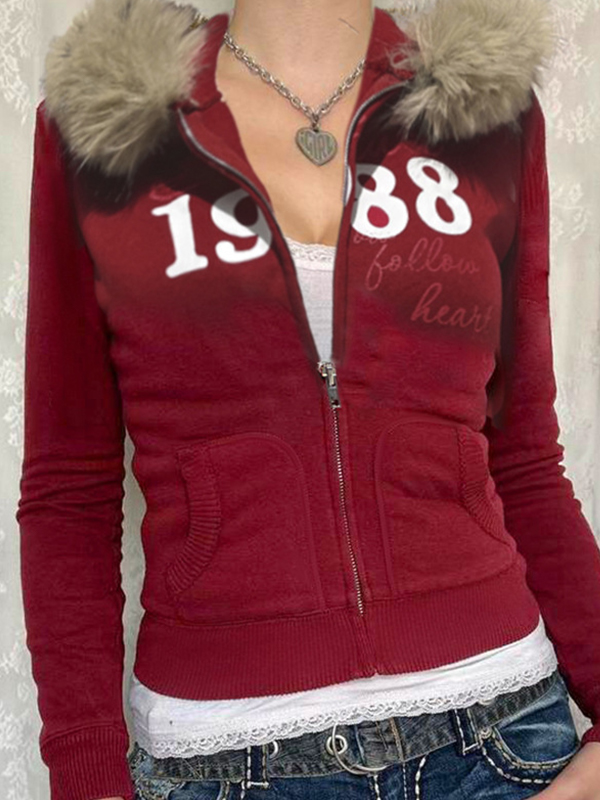 Chaqueta con costura de piel y estampado digital americano