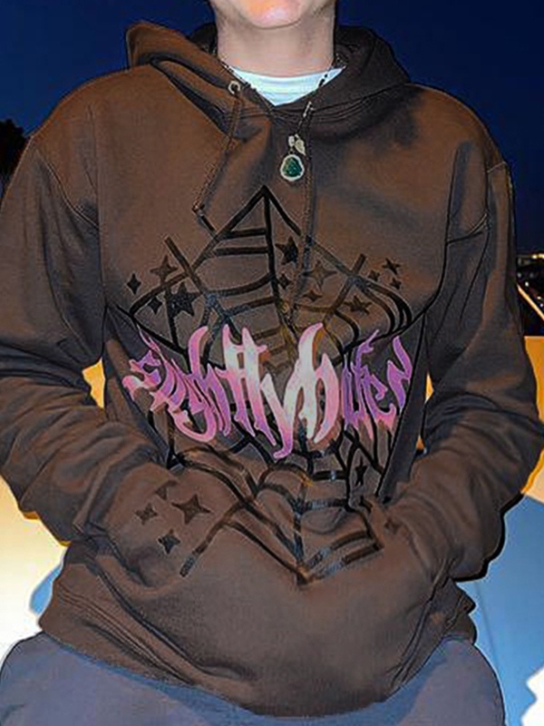 Sudadera con capucha extragrande con estampado de telaraña y letras Hip Pop para hombre