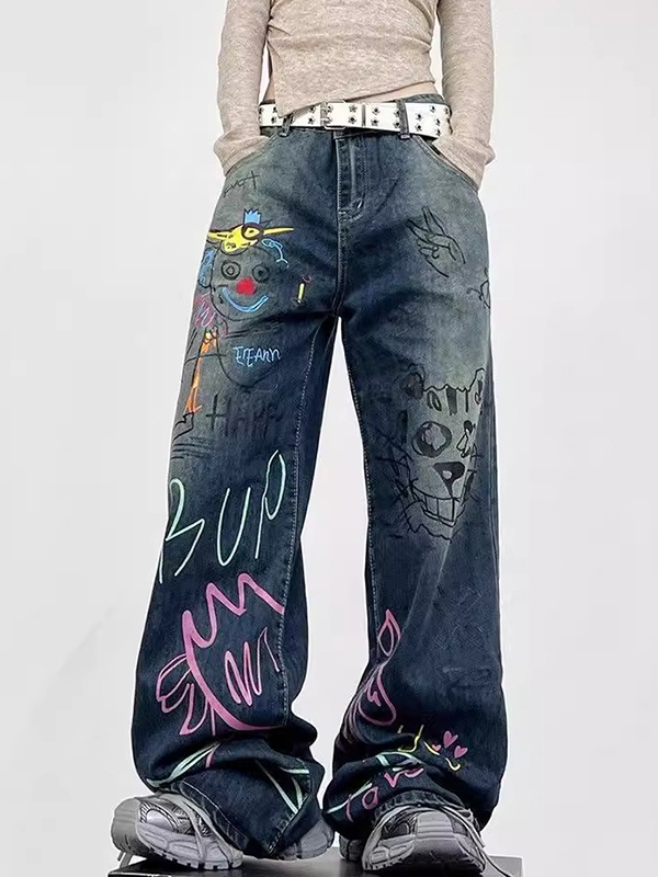 Vaqueros boyfriend con grafiti de estilo vintage americano