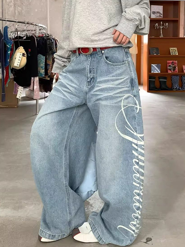 Vaqueros holgados con estampado de letras American Graffiti