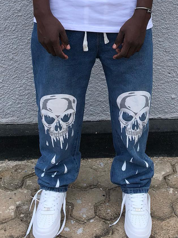 Vaqueros holgados con estampado de calaveras para hombre