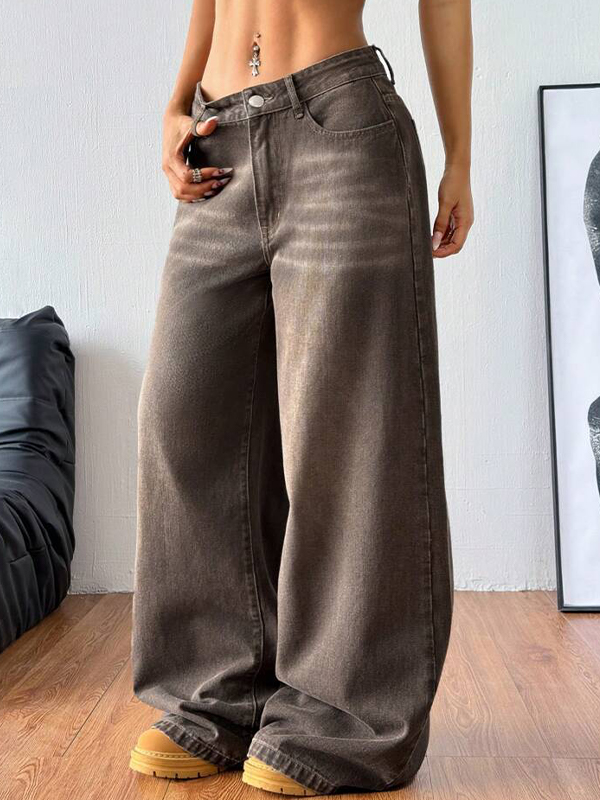 Jeans cargo sueltos de mezclilla con lavado vintage para hombre