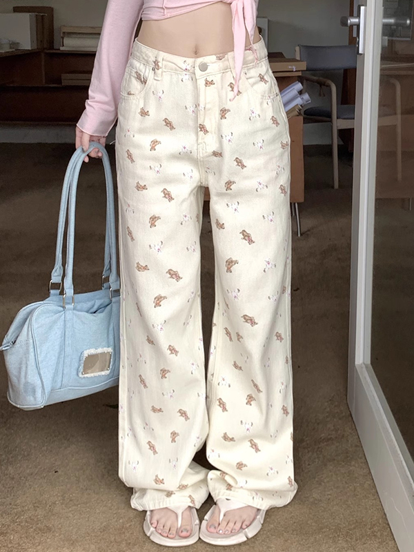 Vaqueros boyfriend con estampado de osos rosas