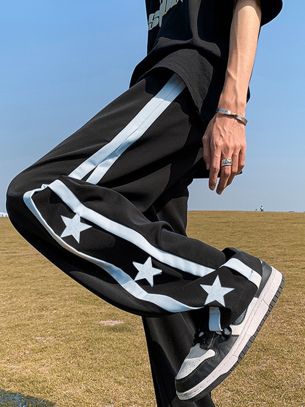 Pantalones deportivos con detalle de ribetes y estampado de estrellas para hombre