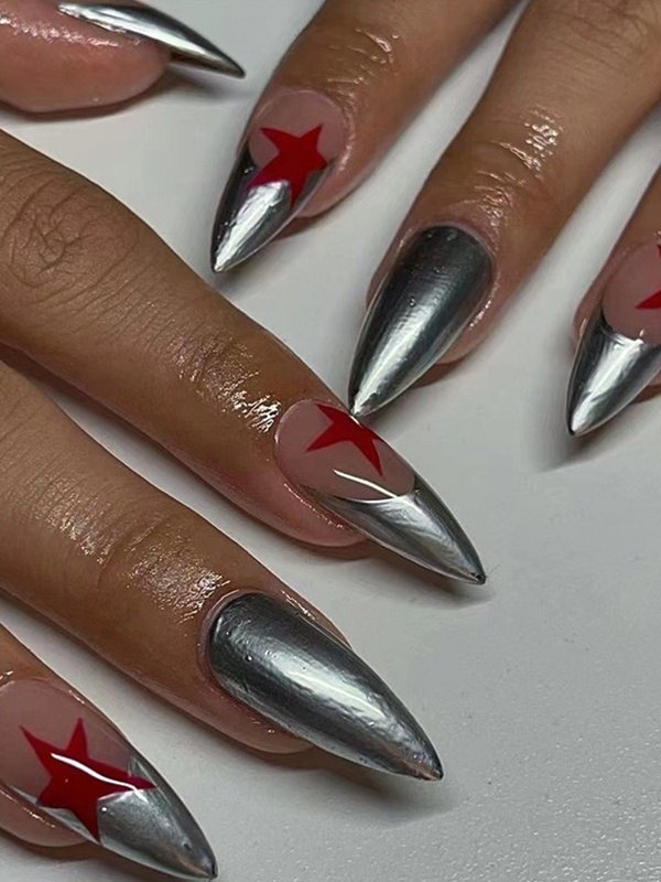 24 piezas de prensa de patrón de estrella en las uñas.