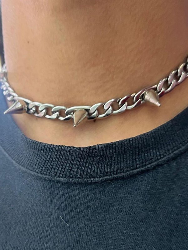 Collar de cadena con tachuelas punk para hombre