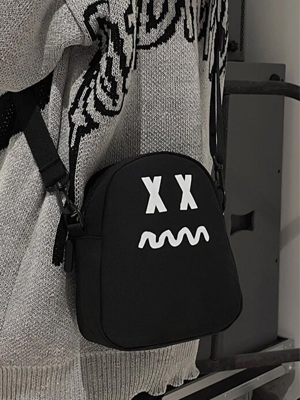Bolso bandolera de nailon negro de dibujos animados