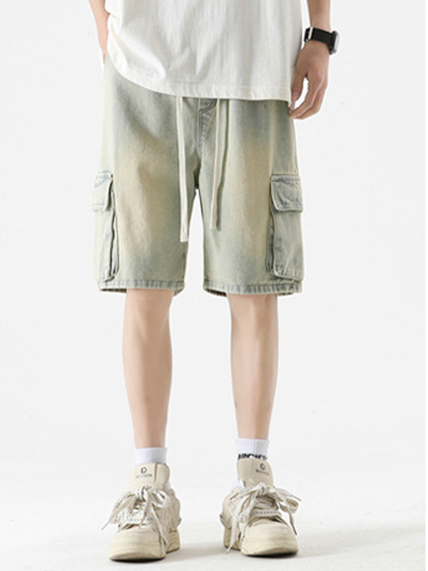 Shorts cargo de mezclilla con bolsillo para hombre
