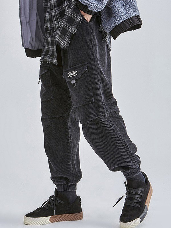 Pantalones jogger de pana con bolsillo vintage para hombre
