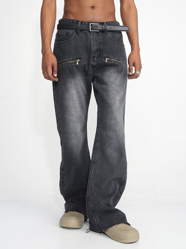 Vaqueros holgados con decoración con cremallera y lavado vintage para hombre
