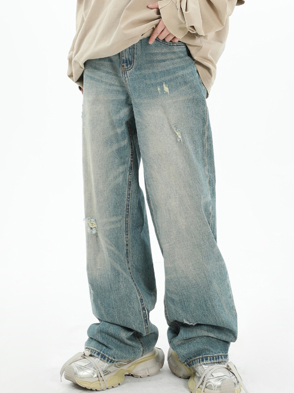 Vaqueros holgados de pierna recta de color caqui para hombre