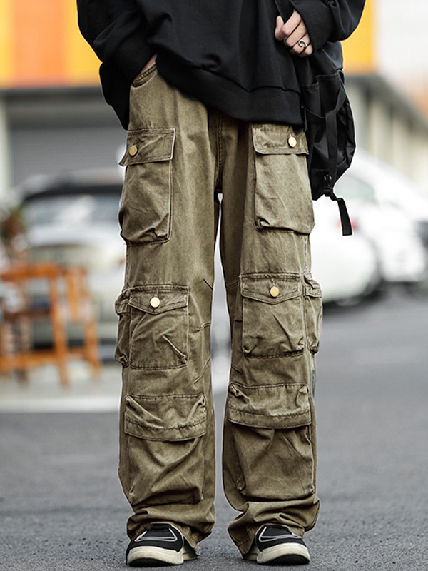 Pantalones cargo sueltos con bolsillo vintage para hombre