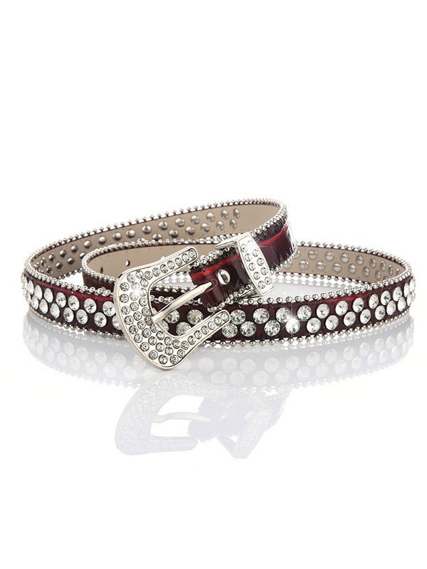 Cinturón con hebilla de piel sintética con diamantes de imitación dobles