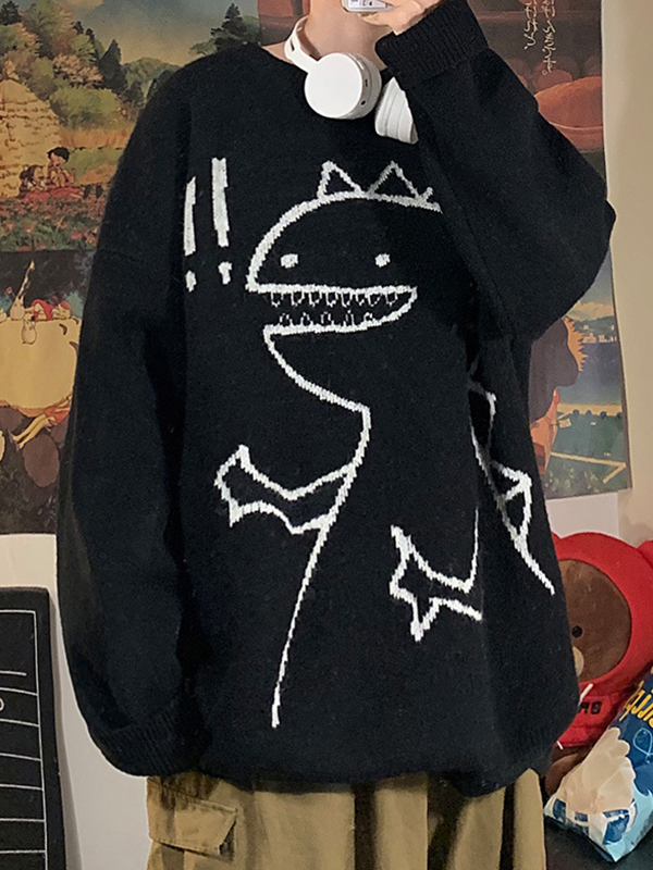 Suéter tipo jersey con dinosaurio de dibujos animados para hombre