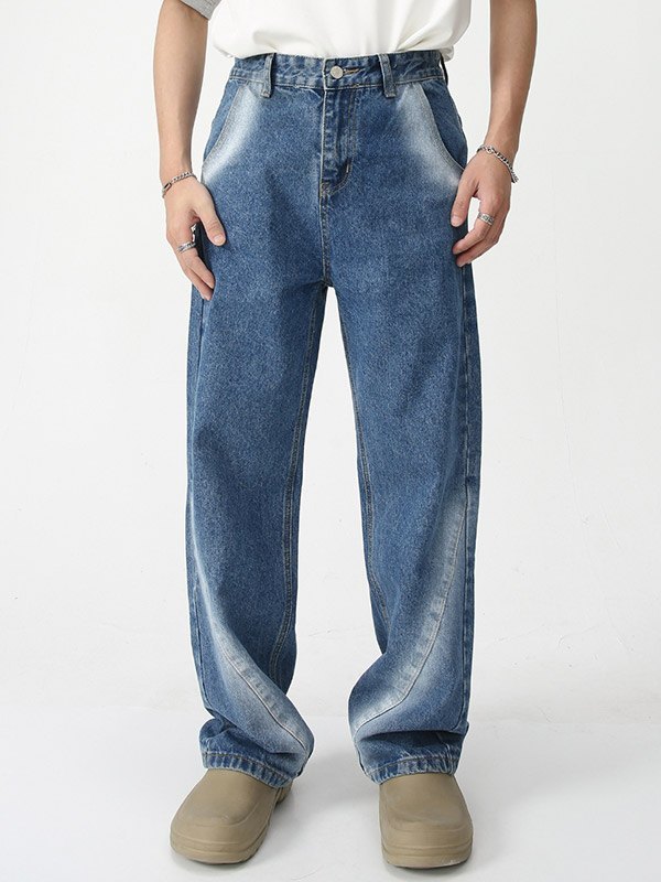 Vaqueros rectos azules con efecto teñido anudado para hombre
