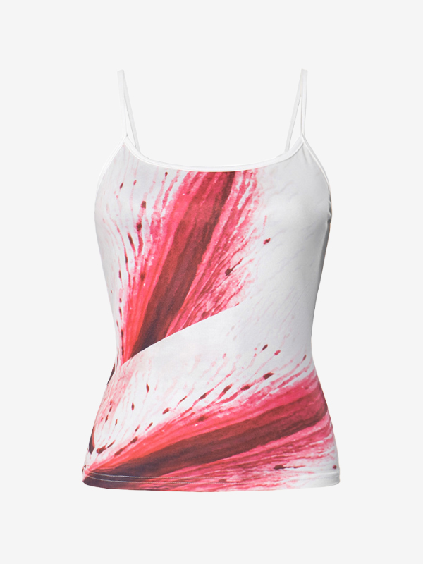Camiseta sin mangas con cuello inclinado y un hombro con estampado de lirios