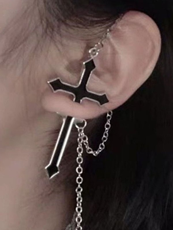 Aretes con dije de cruz adornada con cadena