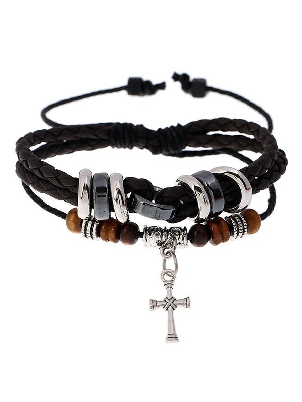 Brazalete de cuerda con cuentas cruzadas de doble capa