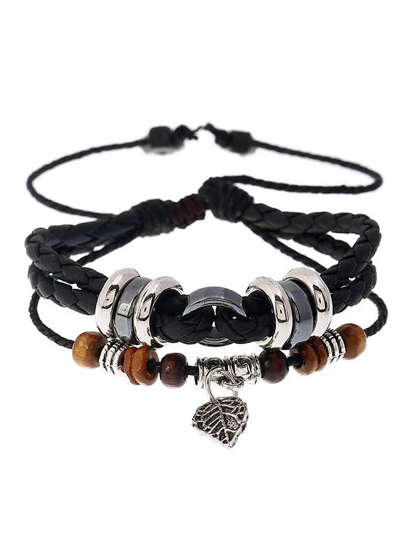 Pulsera de piel sintética con cuentas en capas ajustables