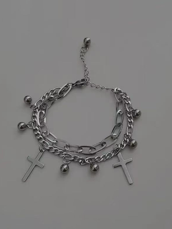 Pulsera colgante de cruz con cuentas de cadena de doble capa