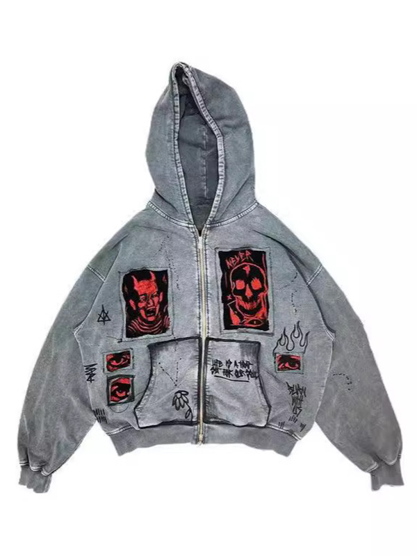 Sudadera con capucha extragrande con cremallera y estampado para hombre