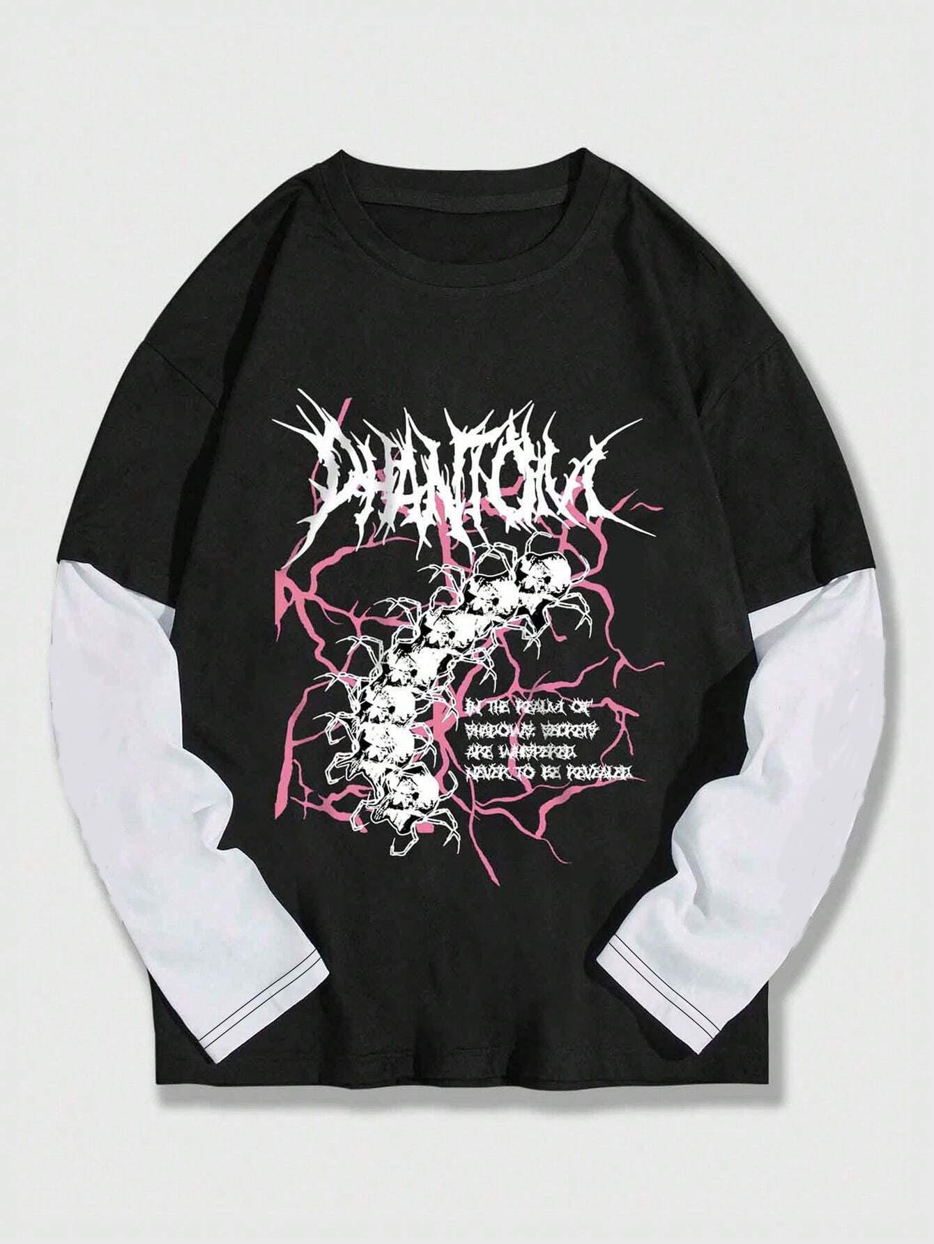 Camiseta de manga larga con estampado de calavera Hip Pop para hombre