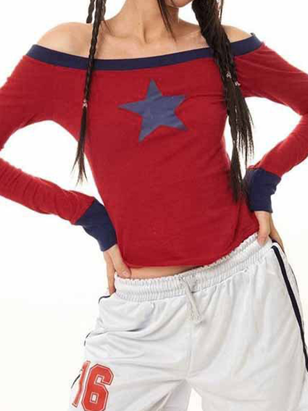 Camiseta de manga larga con hombros descubiertos y estrellas
