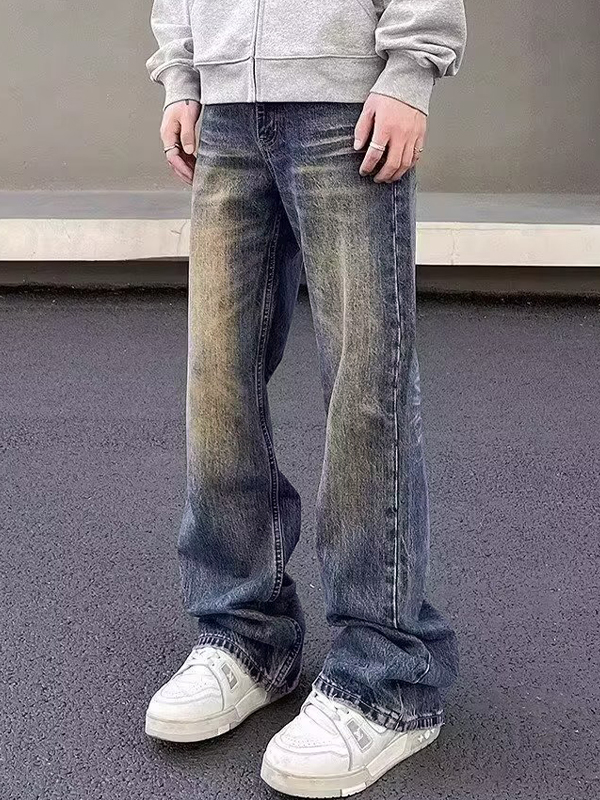 Vaqueros de pierna recta con degradado azul vintage para hombre