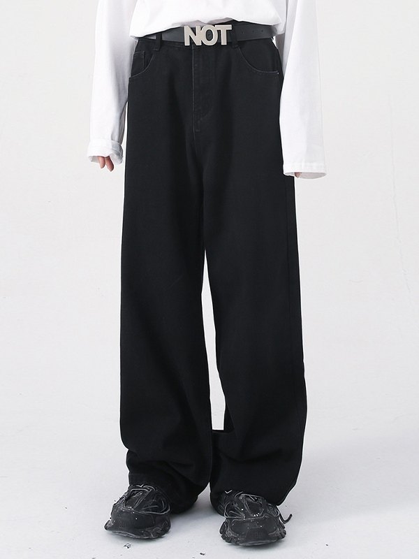 Jeans sueltos de pierna recta con cintura semielástica para hombre