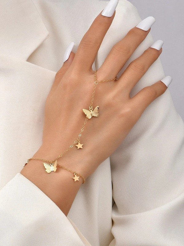 Pulsera esclava de cadena con anillo de dedo de mariposa
