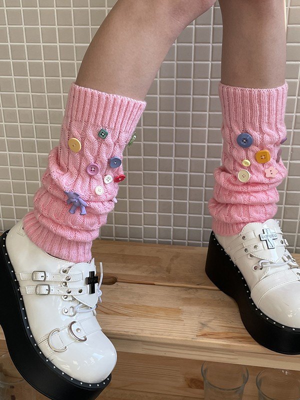 Calentador de piernas de ochos adornado con botones