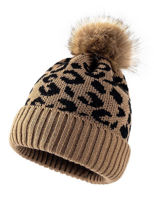 Gorro tejido con pompón de leopardo
