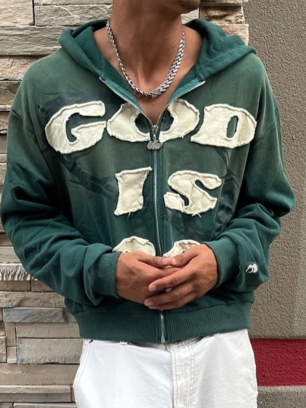 Sudadera con capucha de gran tamaño para hombre con apliques del alfabeto