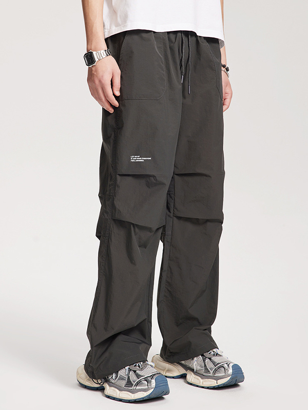Pantalones de pierna ancha con pies atados y empalme sólido para hombre