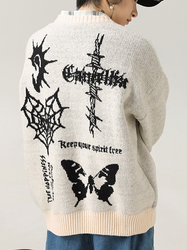 Suéter tipo jersey de jacquard con gatito abstracto vintage para hombre