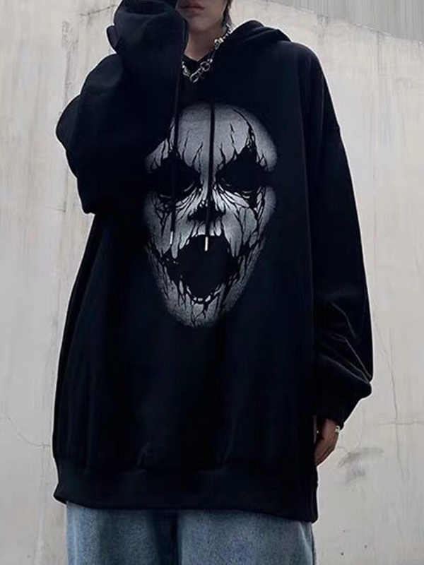 Sudadera con capucha extragrande con estampado de calavera Hip Pop para hombre