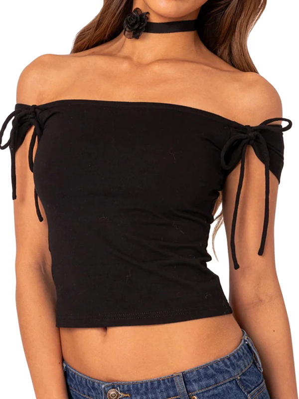Camiseta de manga corta lisa con un solo hombro