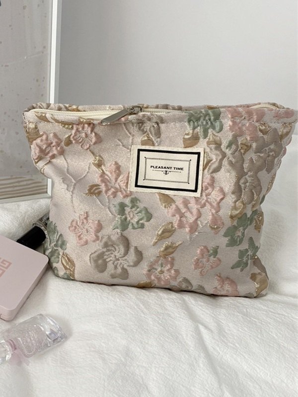 Neceser de maquillaje floral en relieve vintage