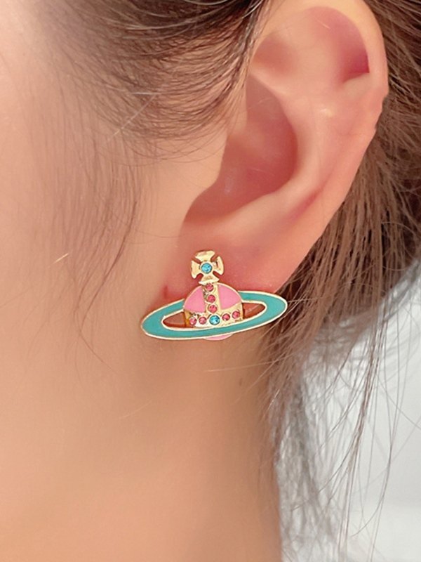 Aretes con dije de Saturno con diamantes de imitación esmaltados