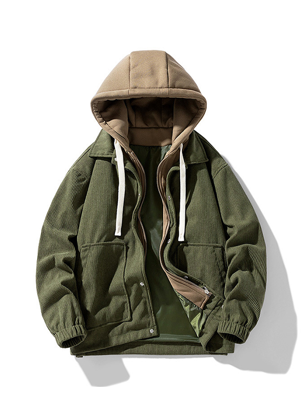 Chaqueta con cremallera y capucha de pana en contraste de color para hombre