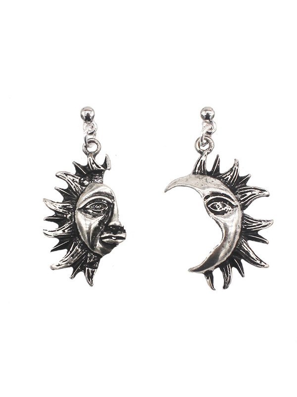 Pendientes asimétricos de sol y luna oscuros