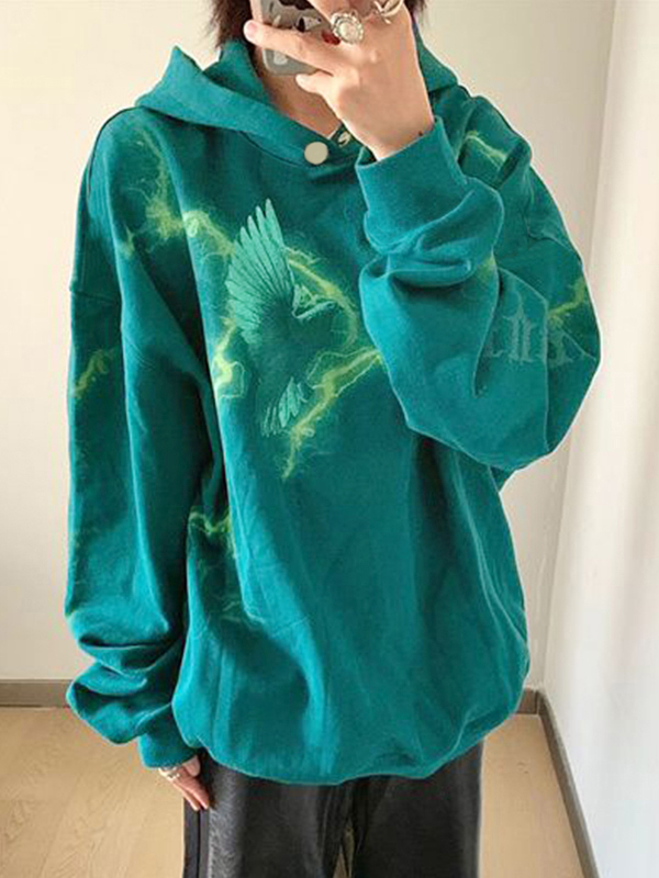 Sudadera con estampado oscuro, suelta, cadena y diseño de agujeros falsos de dos piezas