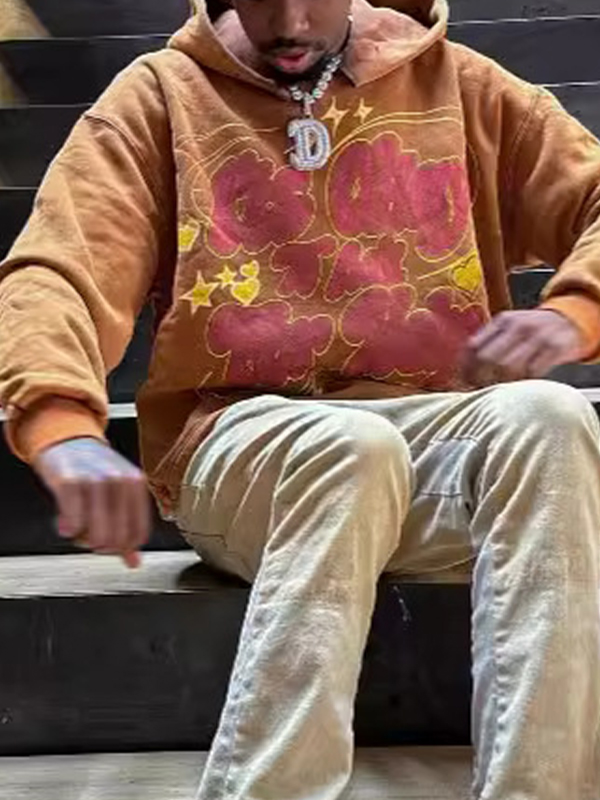 Sudadera con capucha extragrande con estampado de telaraña y letras Hip Pop para hombre