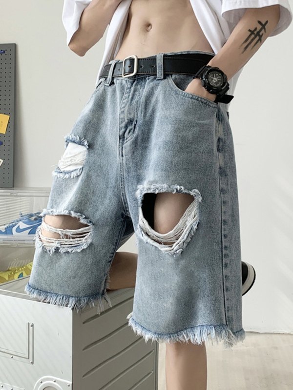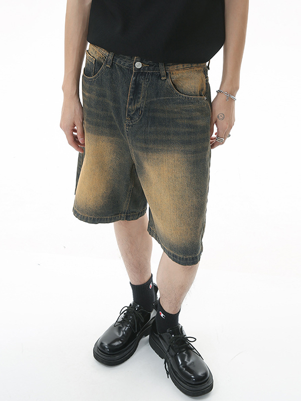 Pantalones cortos de mezclilla desgastados sueltos retro para hombre