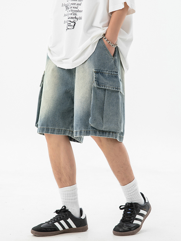 Pantalones cortos sueltos retro con múltiples bolsillos para hombre