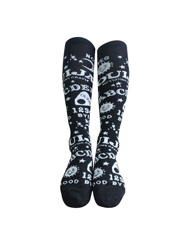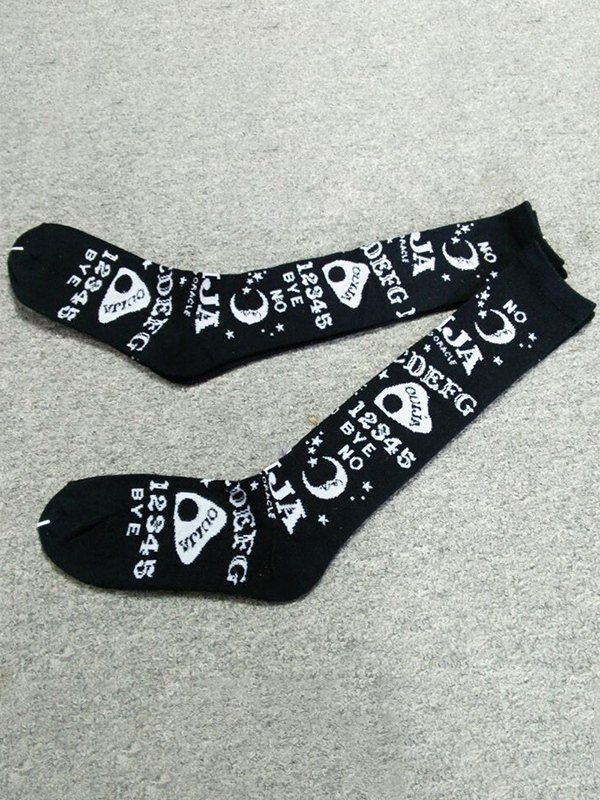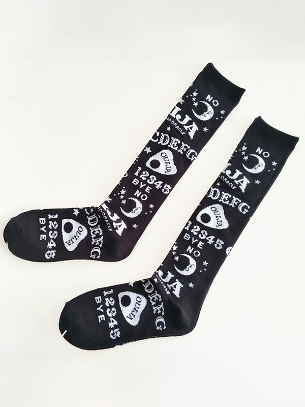 Calcetines Largos Negros Estampado Mixto