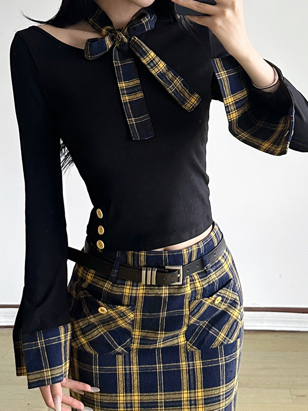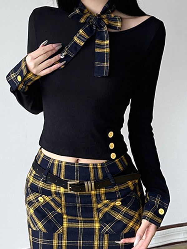 Camiseta de manga larga con costura enrejada